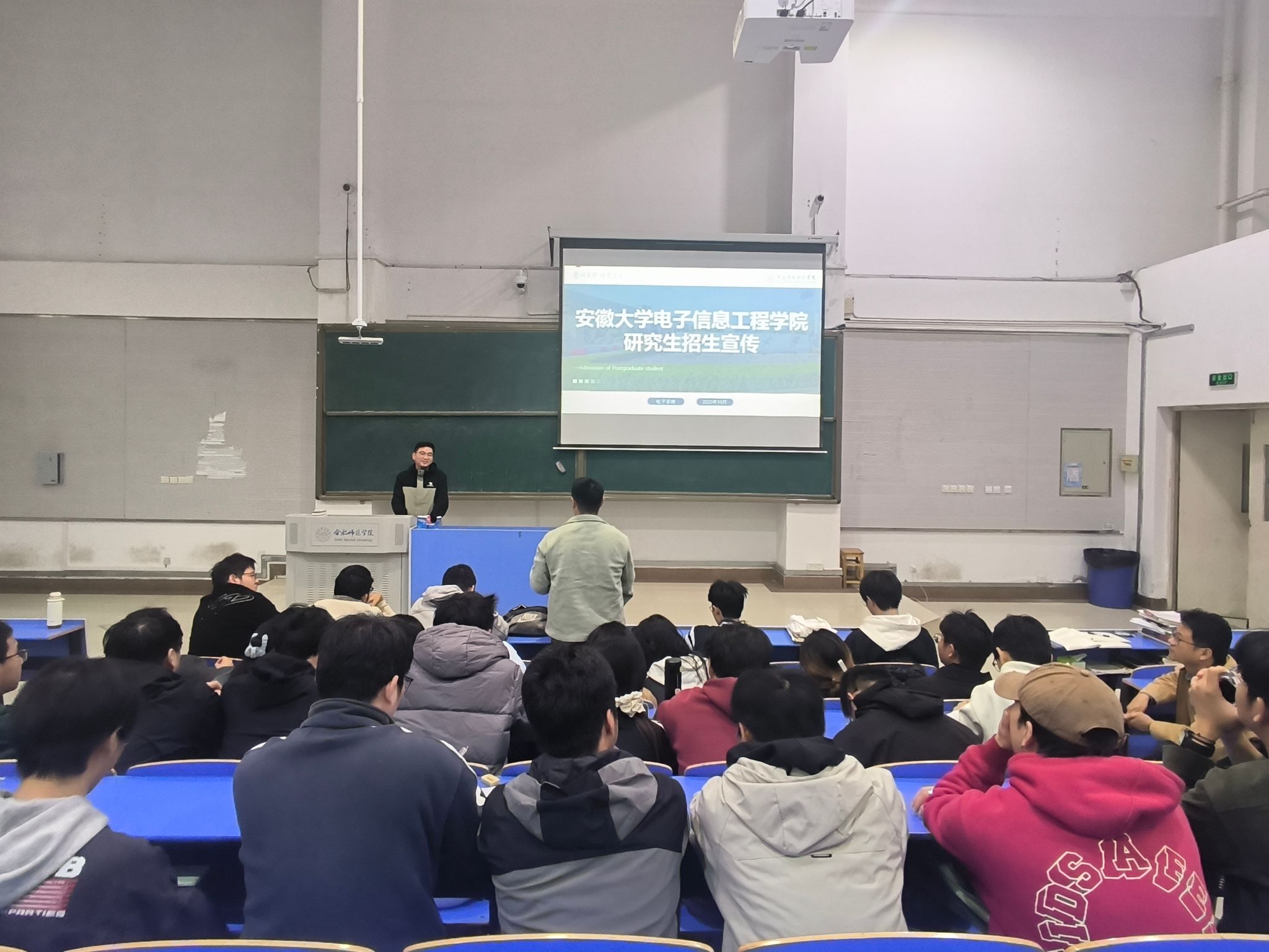 蔡博士作为优秀校友代表,结合自身从本校到安徽大学的学术成长经历,分享了考研心得与科研经验,并介绍了安徽大学电子信息工程学院的研究特色。他以学长的视角,为在场学生提供了宝贵的考研建议和发展规划指导。
